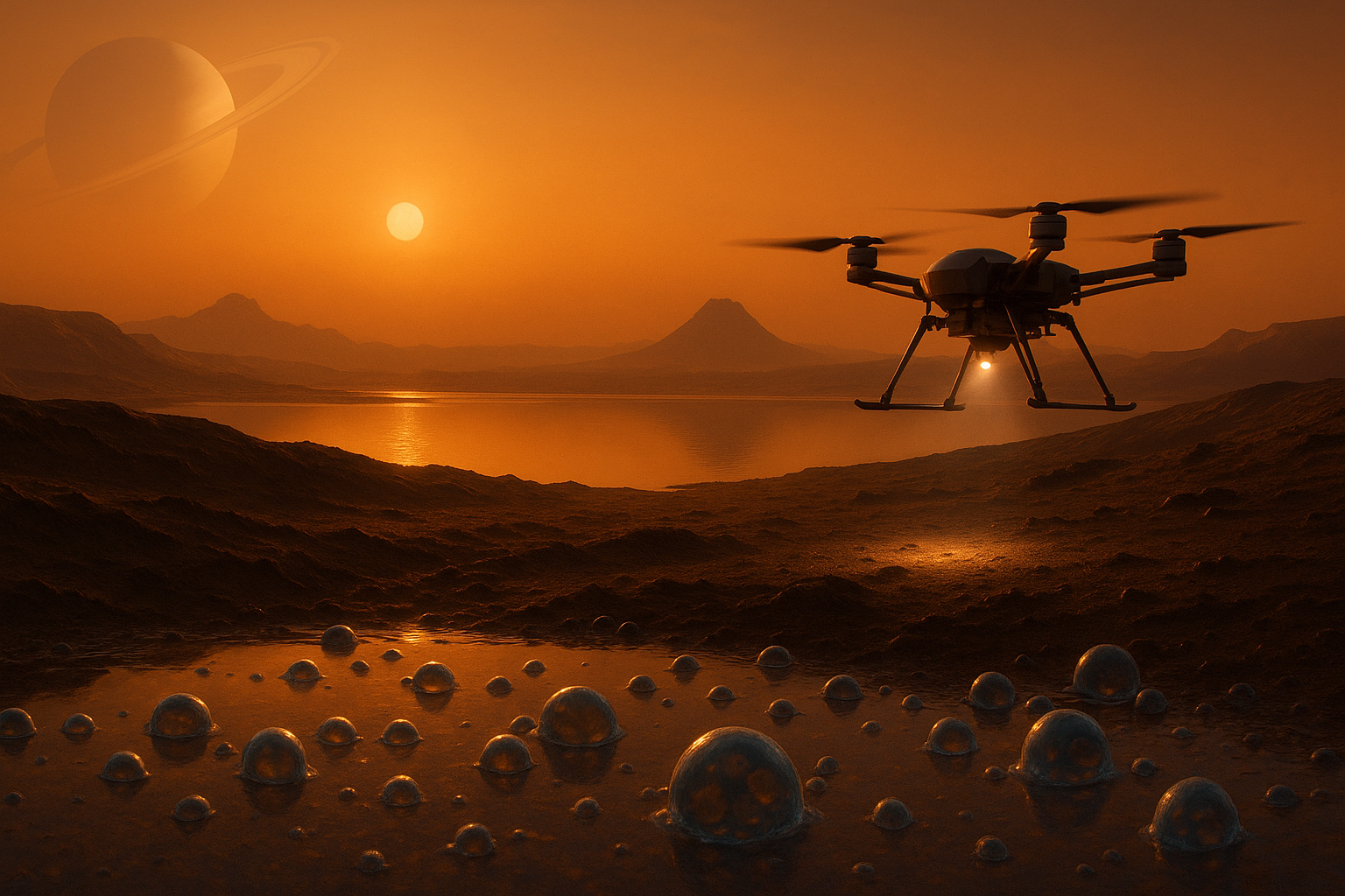 Statt einer irdischen Fettmembran in Wasser könnten sich auf Titan Acrylnitril-Membranen (Azotosomen) in flüssigem Methan/Ethan selbst organisieren – zellartige Bläschen, stabil bei −180 °C.